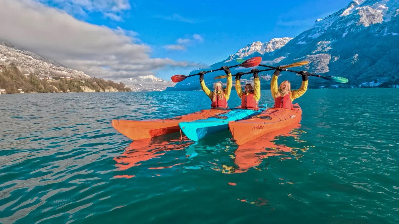 For travelers looking for unusual winter activities in Interlaken, kayaking in winter combines nature, tranquility and breathtaking scenery.
